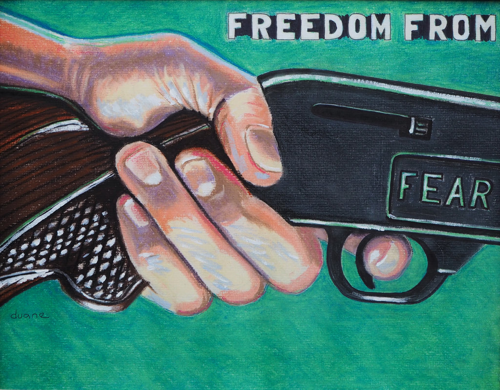 Freedom from Fear (pastel & conte crayon & ink & acrylic paint, 16 x 20 inches)